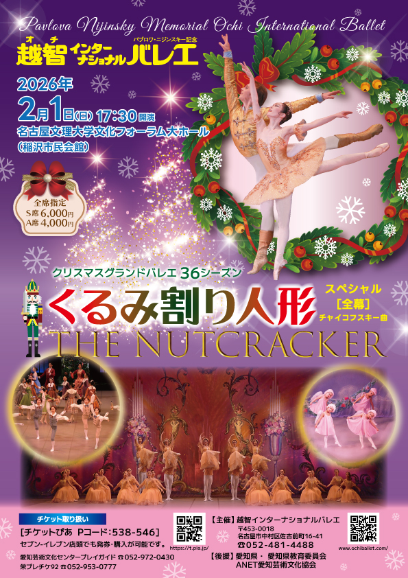 2026年「くるみ割り人形」スペシャル(全幕)の公演は第36シーズンを迎え、今回は 名古屋文理大学文化フォーラム(稲沢市民会館)大ホール にて開催いたします。